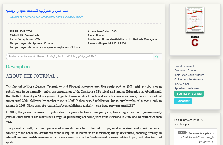 Politique de publication et d'évaluation de la revue des Sciences et Technologies des Activités Physiques et Sportives.